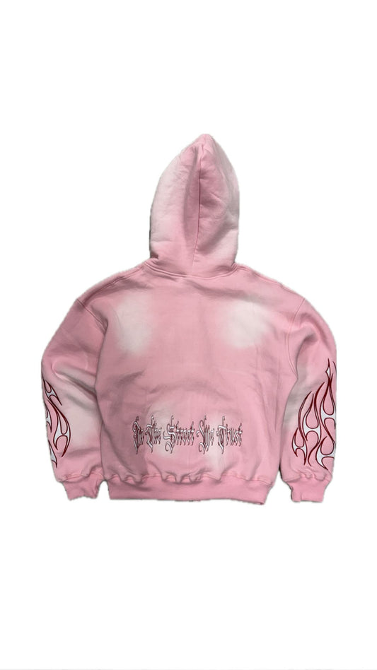 Tribal Flame Zip Hoodie Pink Red | Unisex